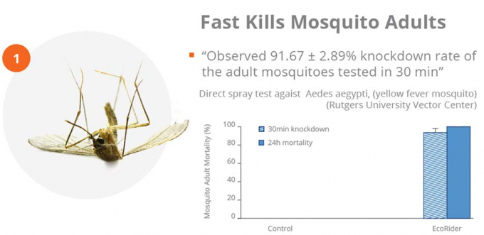 ووفقًا لدراسة مركز جامعة روتجرز لبيولوجيا المتجهات ، فإن 90٪ من البعوض ينهار ويقتل 100٪ من البعوض من قبل منظمة ORO.